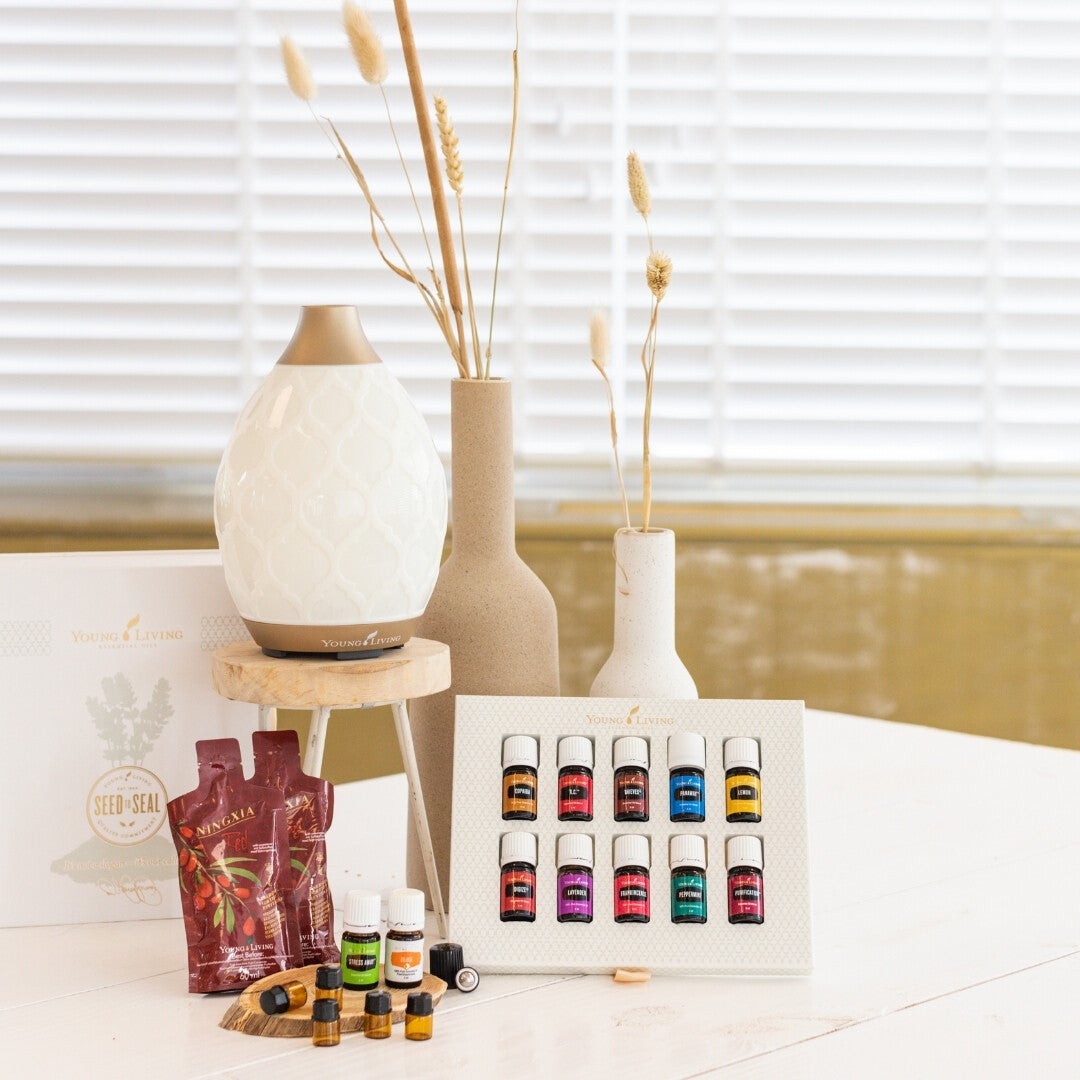 De fijnste, makkelijkste en meest uitgebreide manier om van start te gaan is een Premium Startersbundel. In deze bundel vind jij onder andere 12 breed inzetbare etherische oliën, met elk zijn eigen geur en therapeutische werking, en een diffuser naar keuze. Met deze collectie aan oliën zet jij de eerste stap naar het ditchen en switchen van de troep in jouw huis. Dat hoeft niet in een keer, dat mag in stapjes. Iedere stap is er een. Samen creëren we een bewuste, gezonde en mooie toekomst.